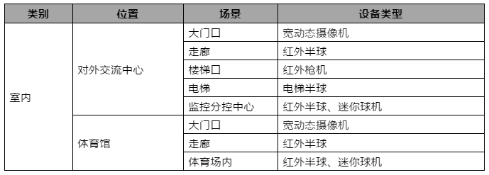 根據高校不同的應用場景,需要選擇不同的前端攝像機,以達到最優的視頻監控效果。具體點位分布如下: